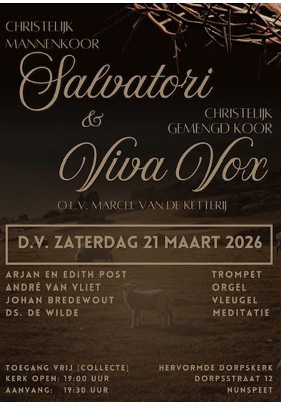 We hopen en stellen ons ten doel om het Woord van God op een muzikale wijze aan een ieder te verkondigen. Op onze website vind u informatie over ons koor, onze concerten, reptities en CD’s.